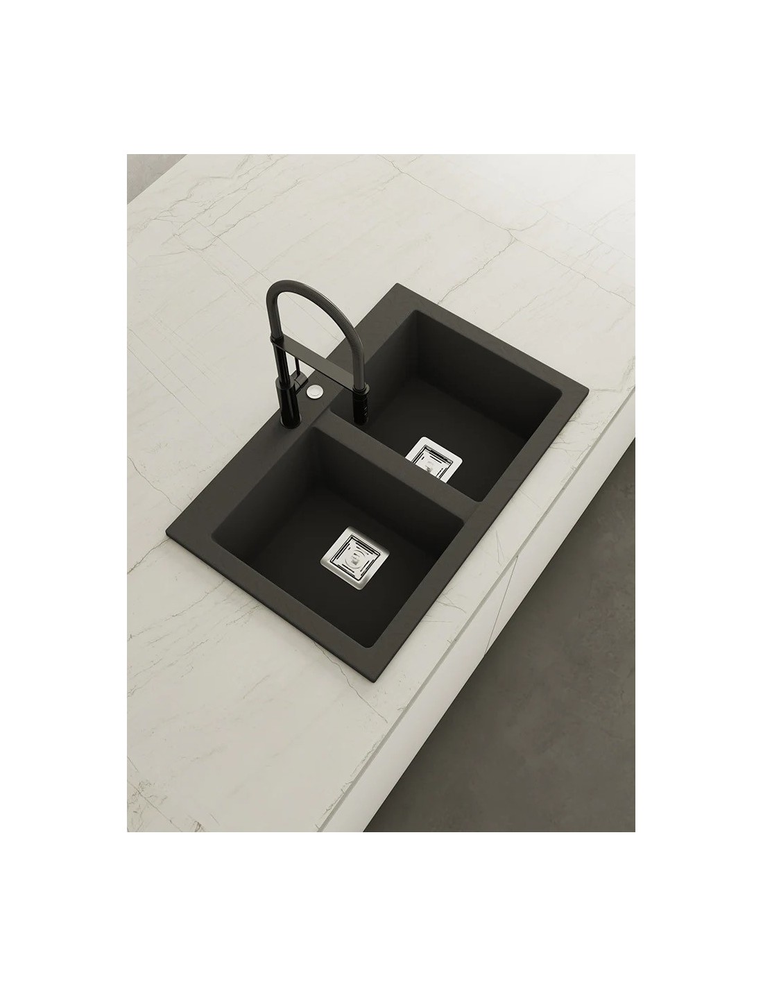 Sanitshop propose cette évier double bacs fabriqué en Helka,un nouveau matériau qui combine 80%de quartz et 20% de résine , d'une grande dureté et très résistants aux coups et rayures.