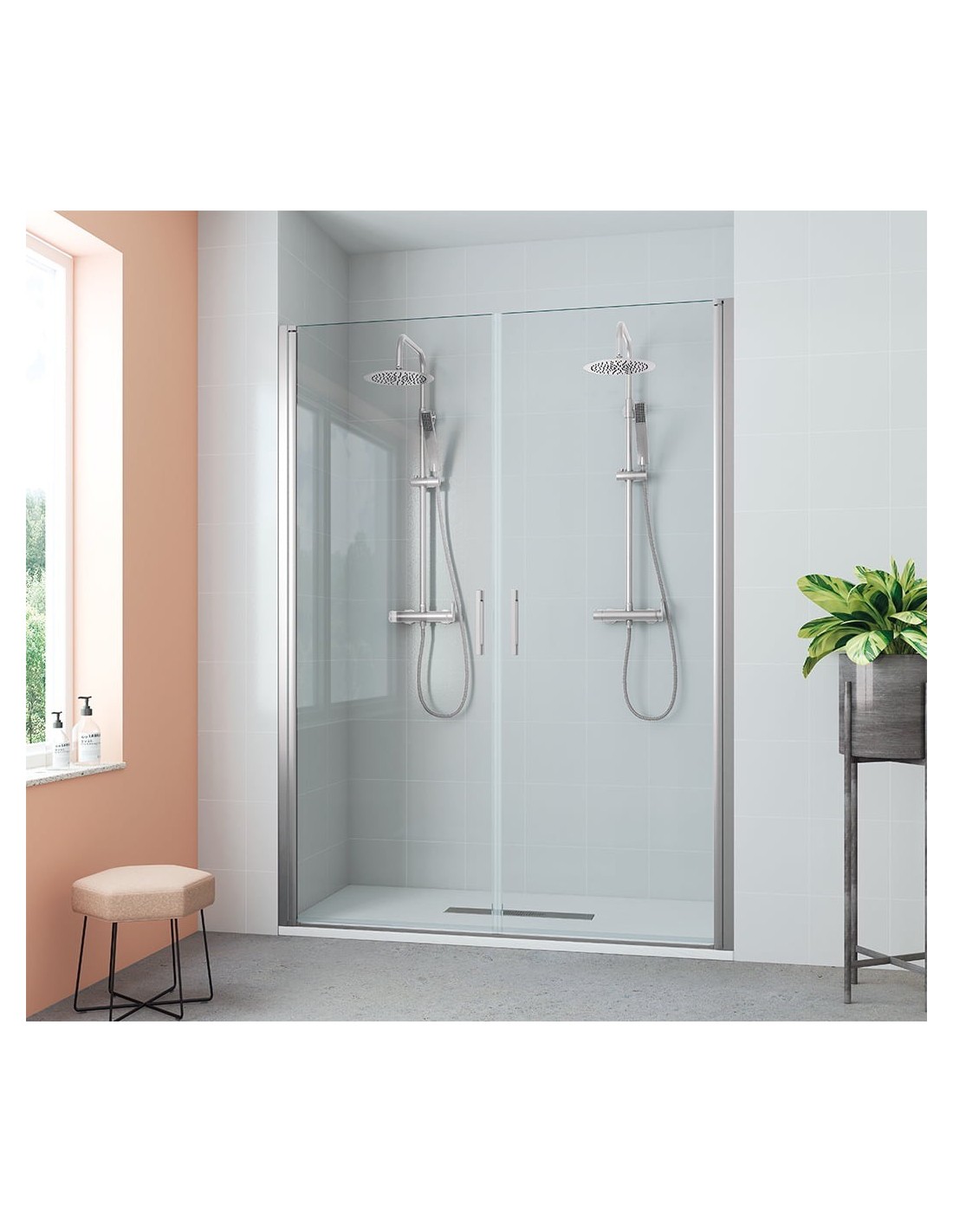 PAROI DE DOUCHE FRONTAL AVEC 2 PORTES BATTANTES ET PROFILÉS EN ALUMINIUM ANODISE -COLLECTION-DENIA-BECRISA