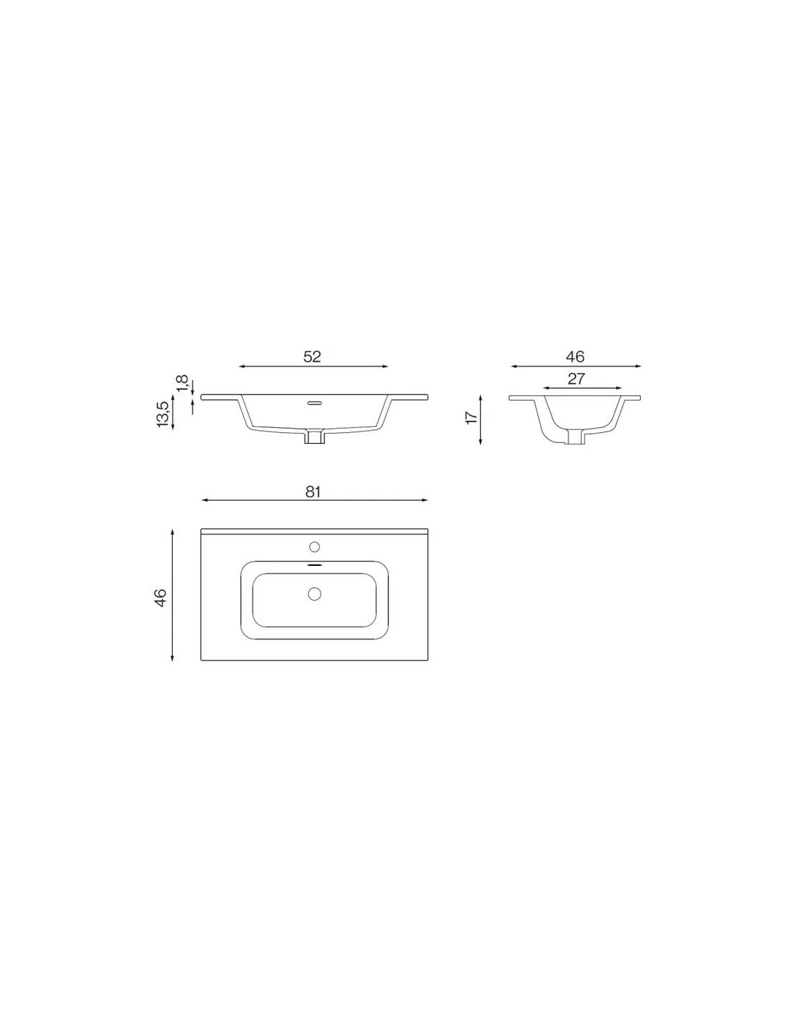 • 81 cm de largeur, 18 cm de hauteur et 46 cm de profondeur.