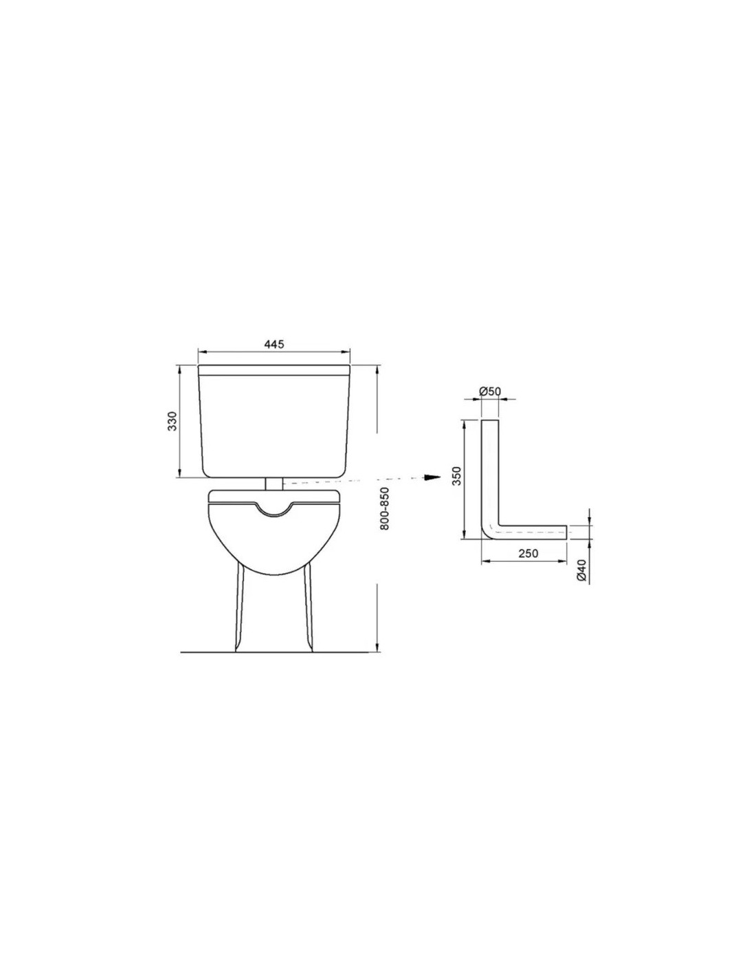 - La livraison comprend un tuyau de raccordement aux toilettes avec une sortie de réservoir de 5 cm de diamètre x 35 cm de haut et une sortie de toilettes de 4 cm de diamètre et 25 cm de long.
