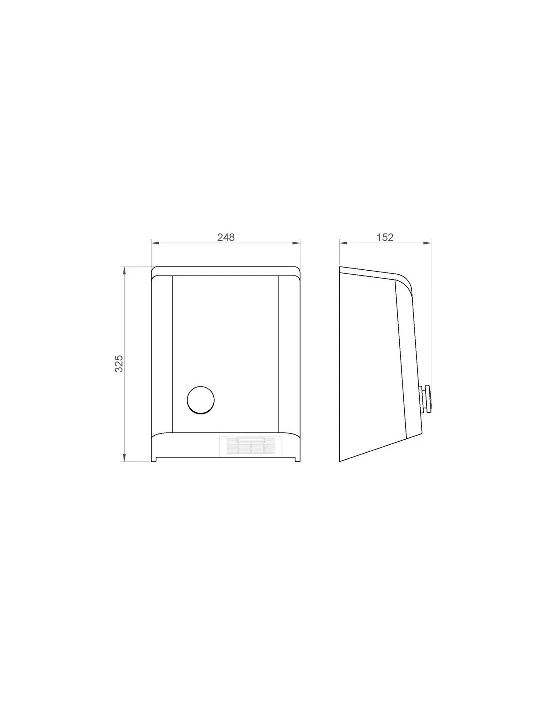 - Le sèche-mains mesure 24,8 cm de large, 32,5 cm de haut et 15,2 cm de profondeur.