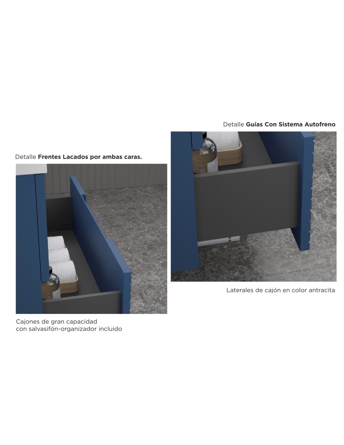 Sanitshop propose cette gamme de meuble vasque suspendu 2 tiroirs coulissants à frein de chute de la Gamme Mana de chez Duplach