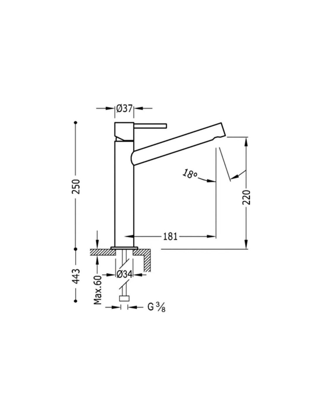MITIGEUR HAUT DE LAVABO AVEC BEC DE 18CM ET POIGNÉE CIRCULAIRE FABRIQUÉ EN LAITON AVEC FINITION CHROMÉE-COLLECTION -MAX -TRES GRIFERIA