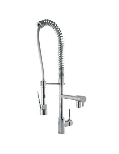 Sanitshop propose ce produit qui appartient à la catégorie Robinetterie de cuisine (robinets pour éviers): avec douchette (avec pommeau de douche), industrielle (pour la restauration), avec bec amovible (extensible, avec flexible), avec bec pivotant, de couleur chromée, de rebord, à bec haut , mitigeur (monobloc), en laiton, de style moderne.