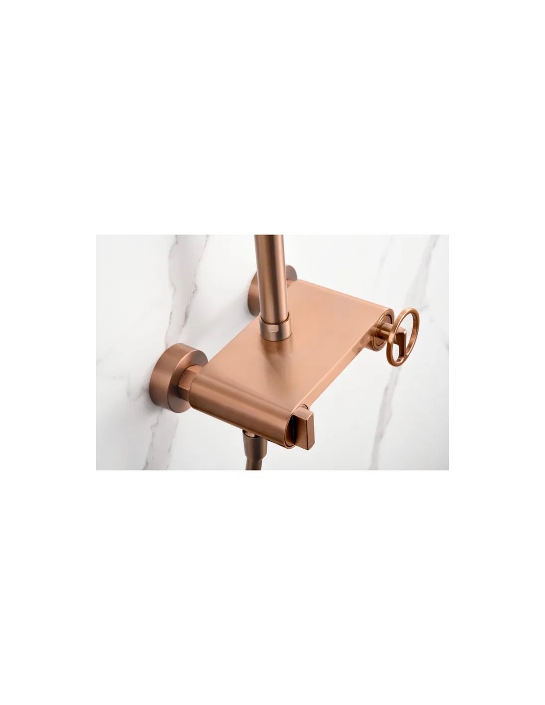 Sanitshop propose ce produit qui  appartient à la catégorie Colonnes de douche (colonnes de douche avec hydromassage): de douche uniquement, de couleur or (or rose), téléscopiques (avec hauteur réglable), en acier inoxydable, mitigeurs (une poignée), avec pomme haute supérieure circulaire, de style moderne.