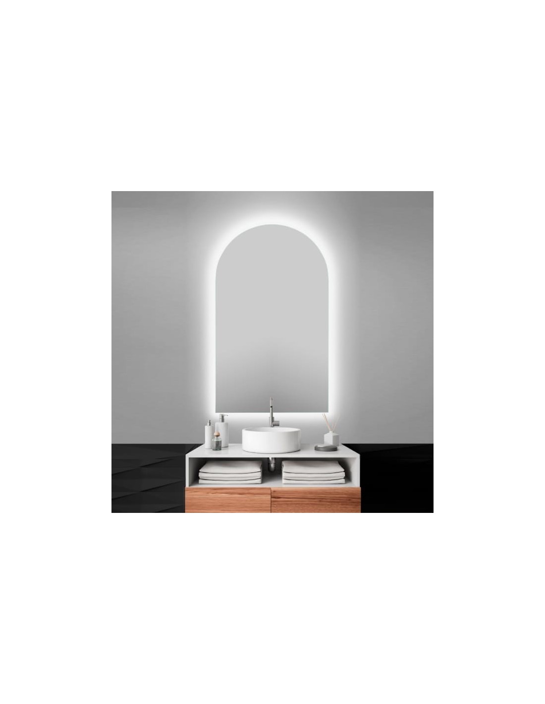 MIROIR ARQUE AVEC ECLAIRAGE LED BORD POLI "COLLECTION B963 BATH STAGE "
