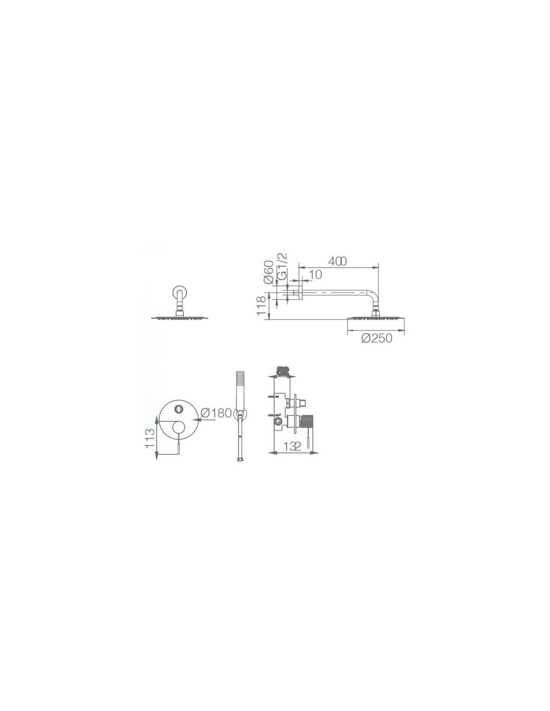 • Inverseur rond intégré pour passer de la pomme haute au pommeau de douche.