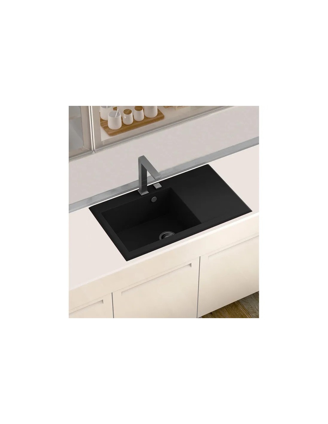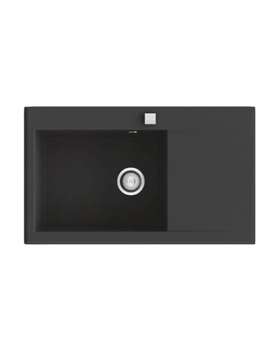 Sanitshop propose ce produit appartient à la catégorie Éviers de cuisine: en résine et charges minérales (synthétiques), avec égouttoir, encastrés sur le plan, encastrés sous le plan, de 71 à 90 cm (centimètres) de long, de couleur noire, à 1 bac (cuve, vasque) et égouttoir, de style moderne, de forme rectangulaire.