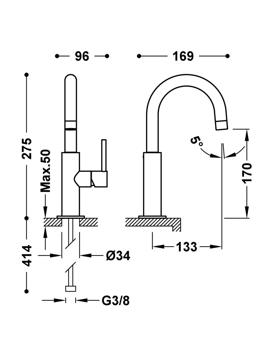 MITIGEUR LAVABO COL DE CYGNE STUDY TRES