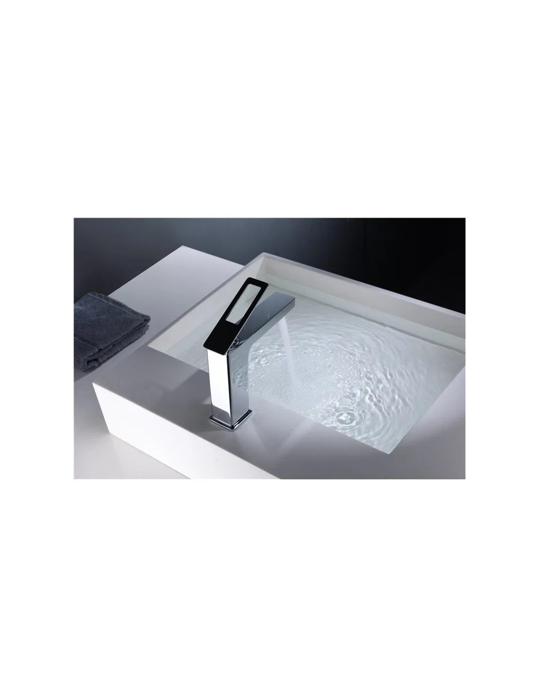 Sanitshop propose ce mitigeur lavabo au bec droit avec une forme plate