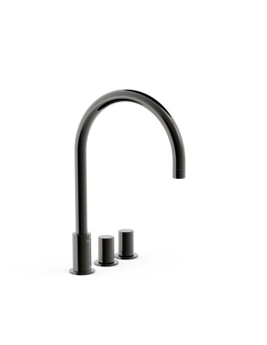 Sanitshop propose ce produit  qui se trouve dans la catégorie Robinets de lavabo et vasque (robinetterie pour la salle de bains, robinets pour lave-mains, robinets pour vasque): de plusieurs pièces (séparées), de rebord, avec bec moyen , avec bec long , en laiton, mélangeurs manuels (deux poignées), de style moderne, de couleur chromée, de corps rond.