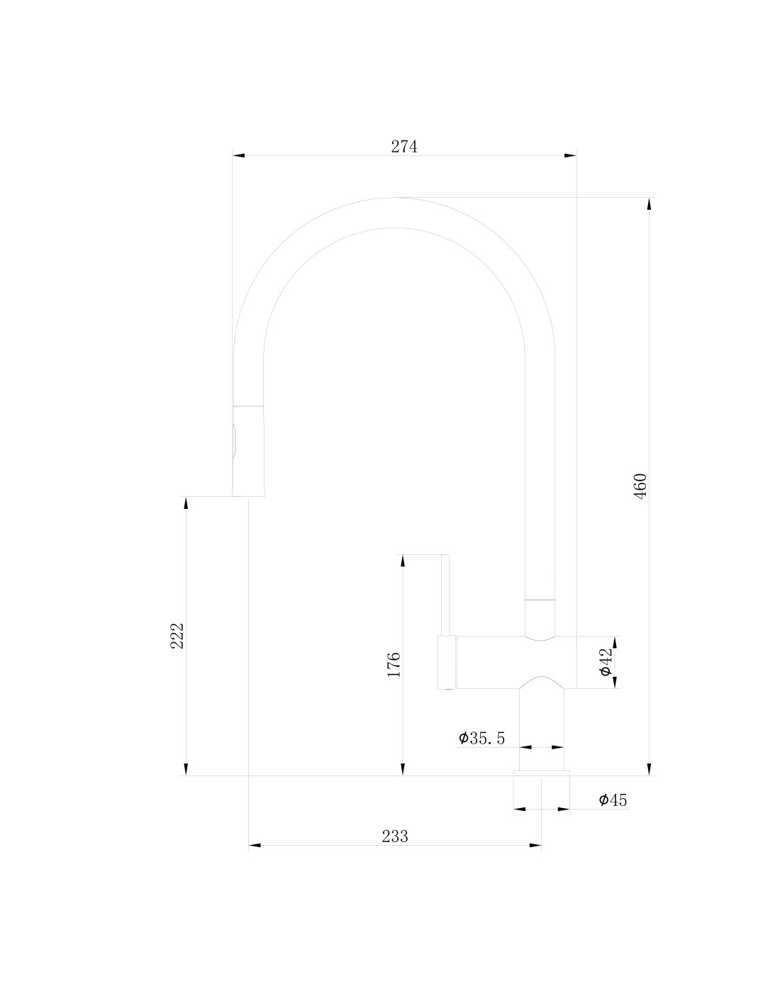 • Dimensions : 22,2 cm de long x 46 cm de haut. Bec de 3 cm de diamètre et base de 5,7 cm.