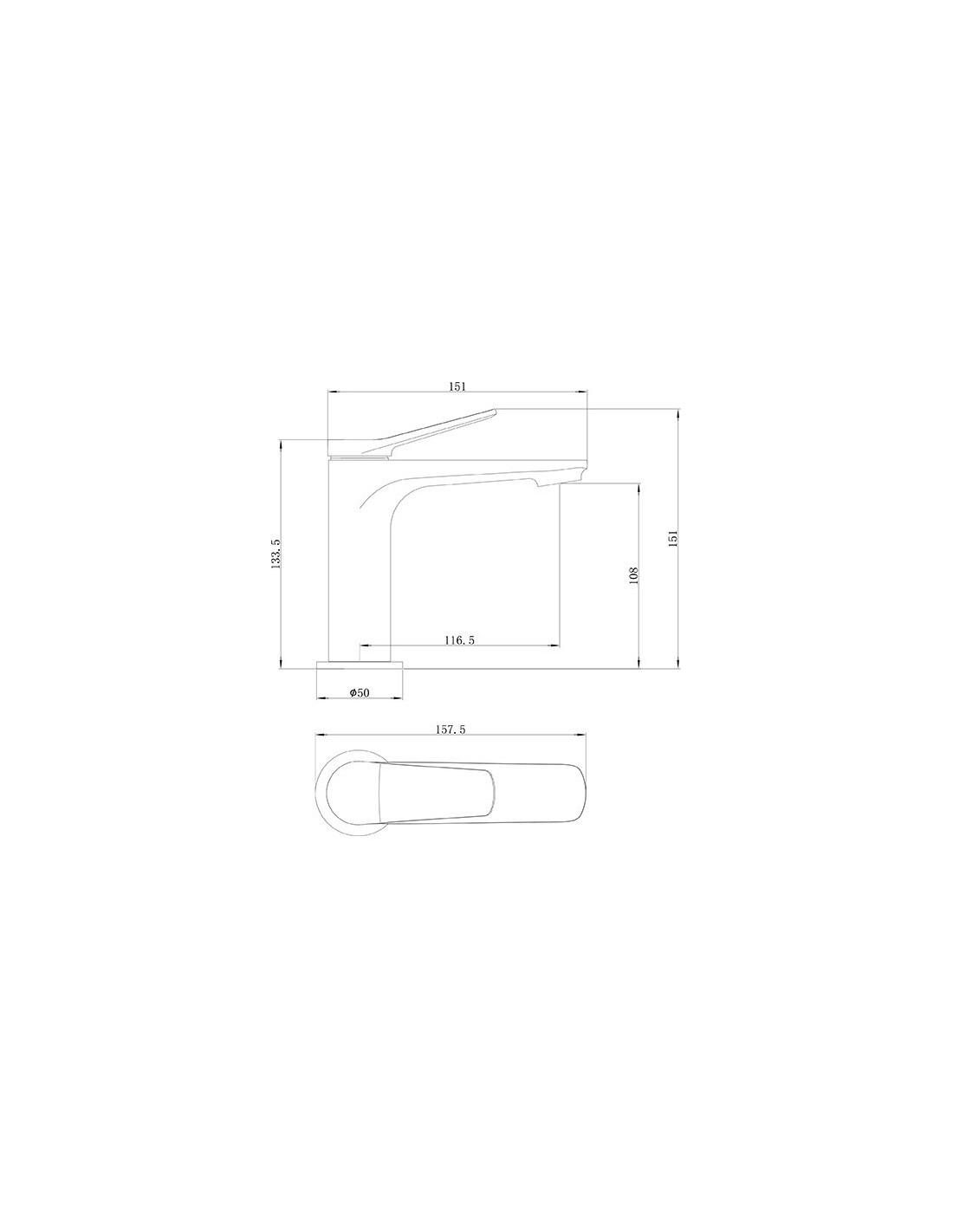 • Dimensions du robinet : 133,5 mm de haut x 151 mm de long.
