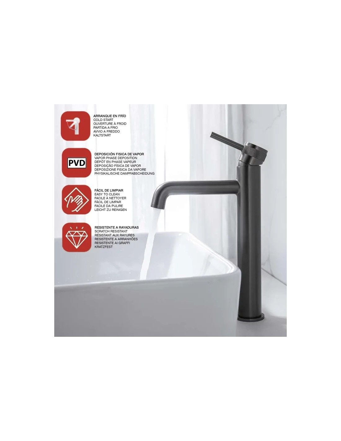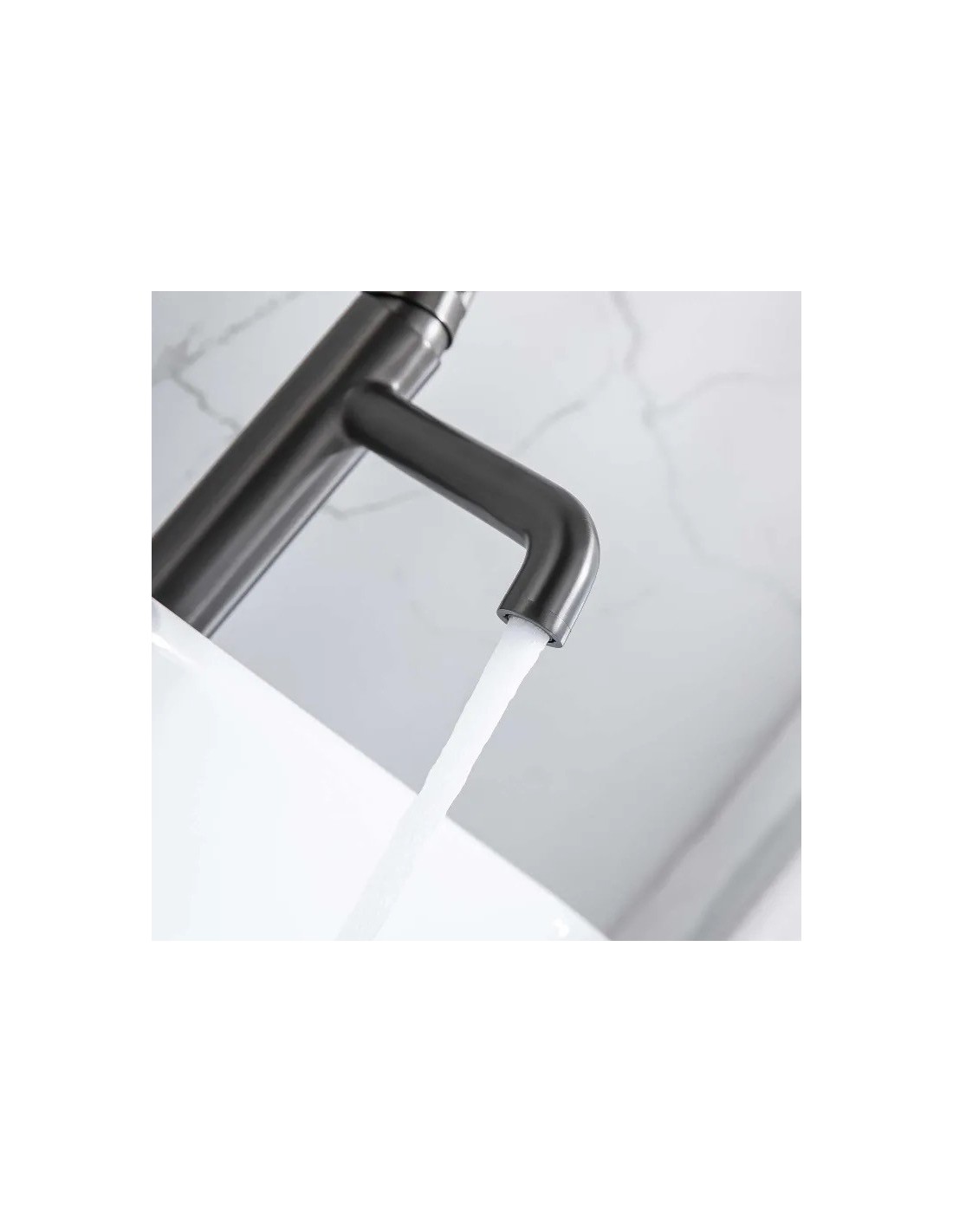 anitshop propose ce produit  qui se trouve dans la catégorie Robinets de lavabo et vasque (robinetterie pour la salle de bains, robinets pour lave-mains, robinets pour vasque): de rebord, avec bec grand , avec bec long , en laiton, mitigeurs (une poignée), de style moderne, de couleur gris mat pvd , de corps rond.