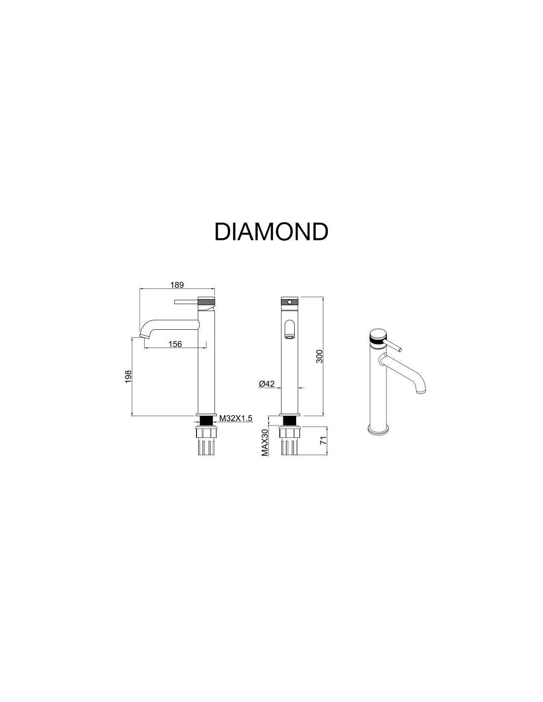 Dimensions: 4,2 cm de diamètre*30cm de haut *18,9cm de large Sanitshop propose ce Robinet mitigeur haut de la série Diamond de chez Sky Bath;