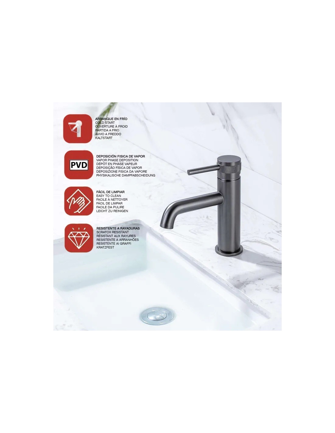 Sanitshop propose ce produit qui se trouve dans la catégorie Robinets de lavabo et vasque (robinetterie pour la salle de bains, robinets pour lave-mains, robinets pour vasque): de rebord, avec bec bas , avec bec court , en laiton, mitigeurs (une poignée), de style moderne, de couleur Gris mat Pvd , de corps rond.