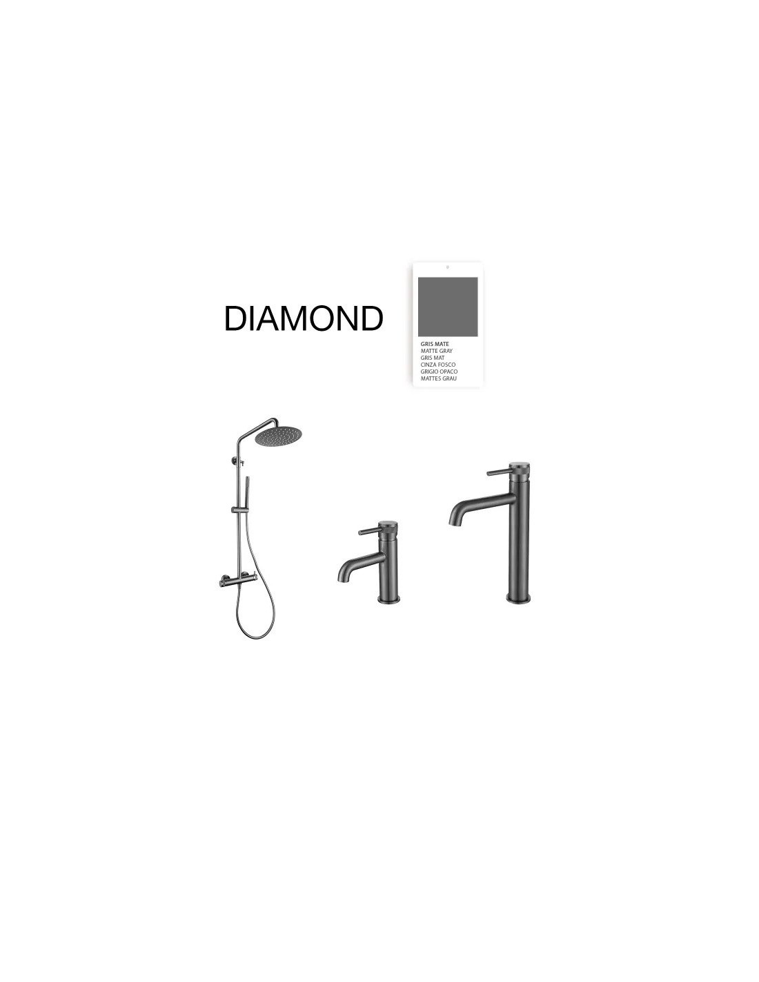 MITIGEUR LAVABO EN ACIER INOXYDABLE GRIS MAT PVD "COLLECTION DIAMOND SKY BATH "