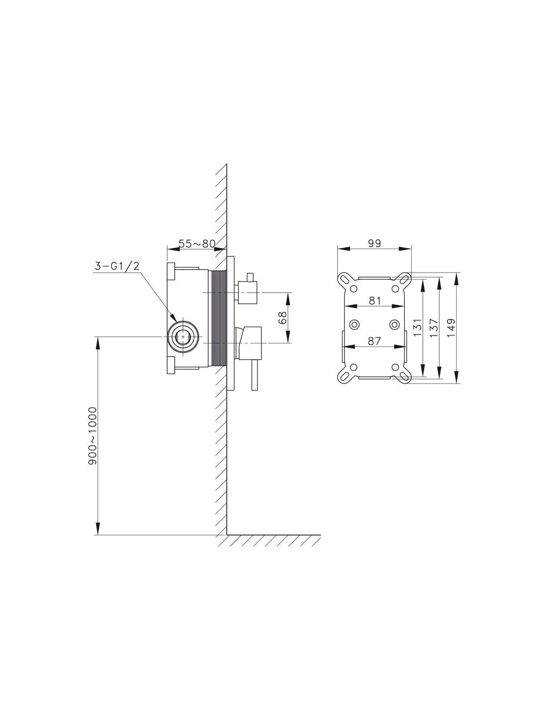 • Mitigeur de douche mural en laiton.