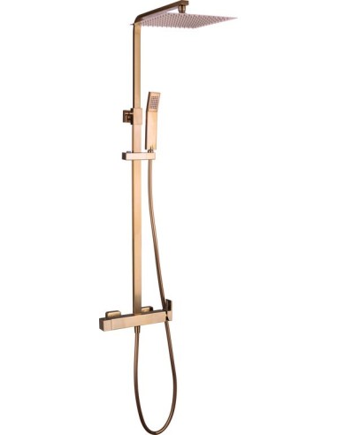 COLONNE DE DOUCHE EN LAITON AVEC POMMEAU ET DOUCHETTE CARRÉE CUIVRE PVD "COLLECTION MARRIOT GME"