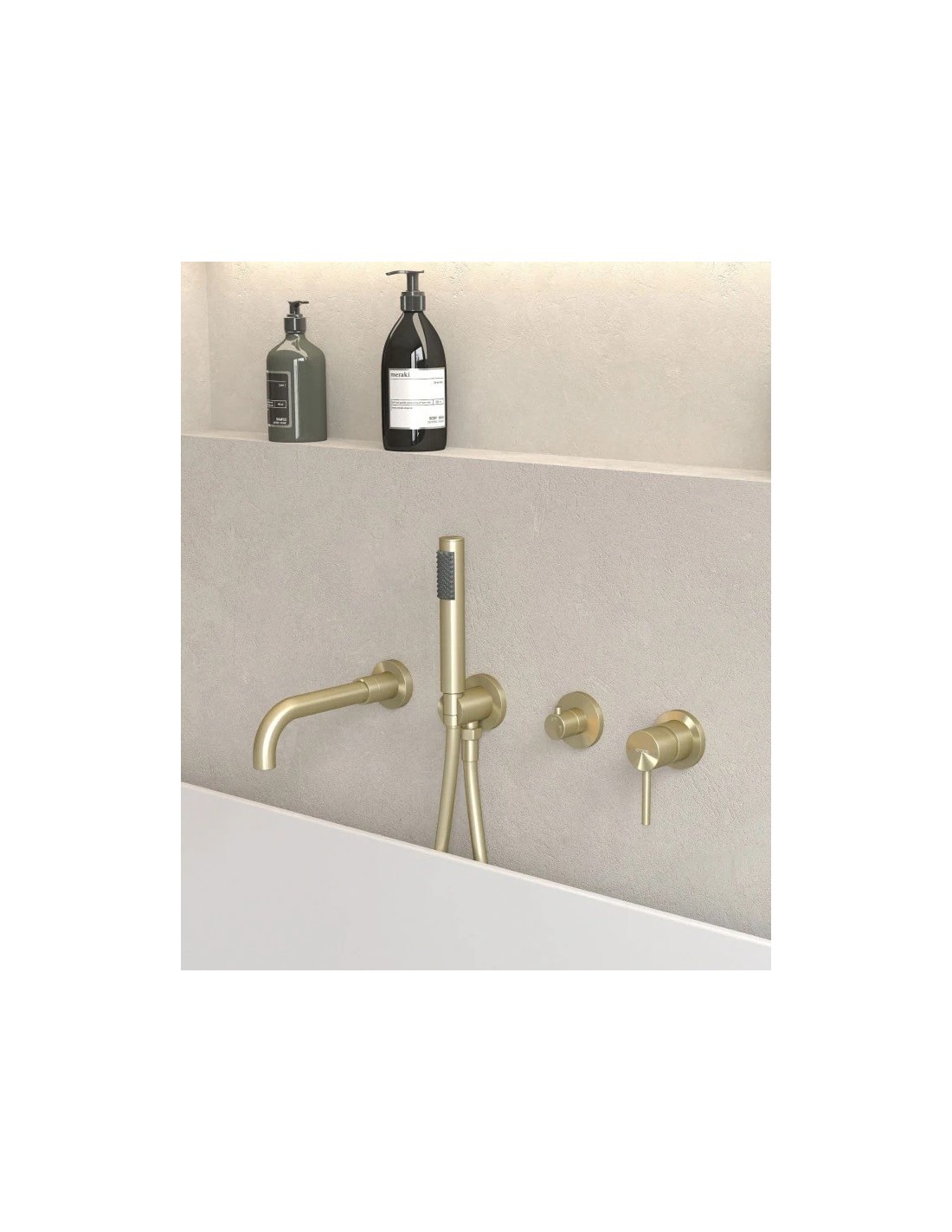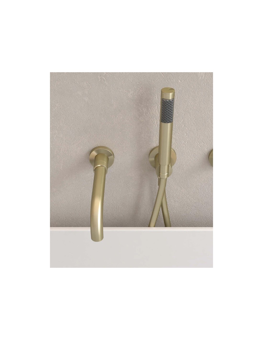 - 1 douchette à main en laiton avec support.