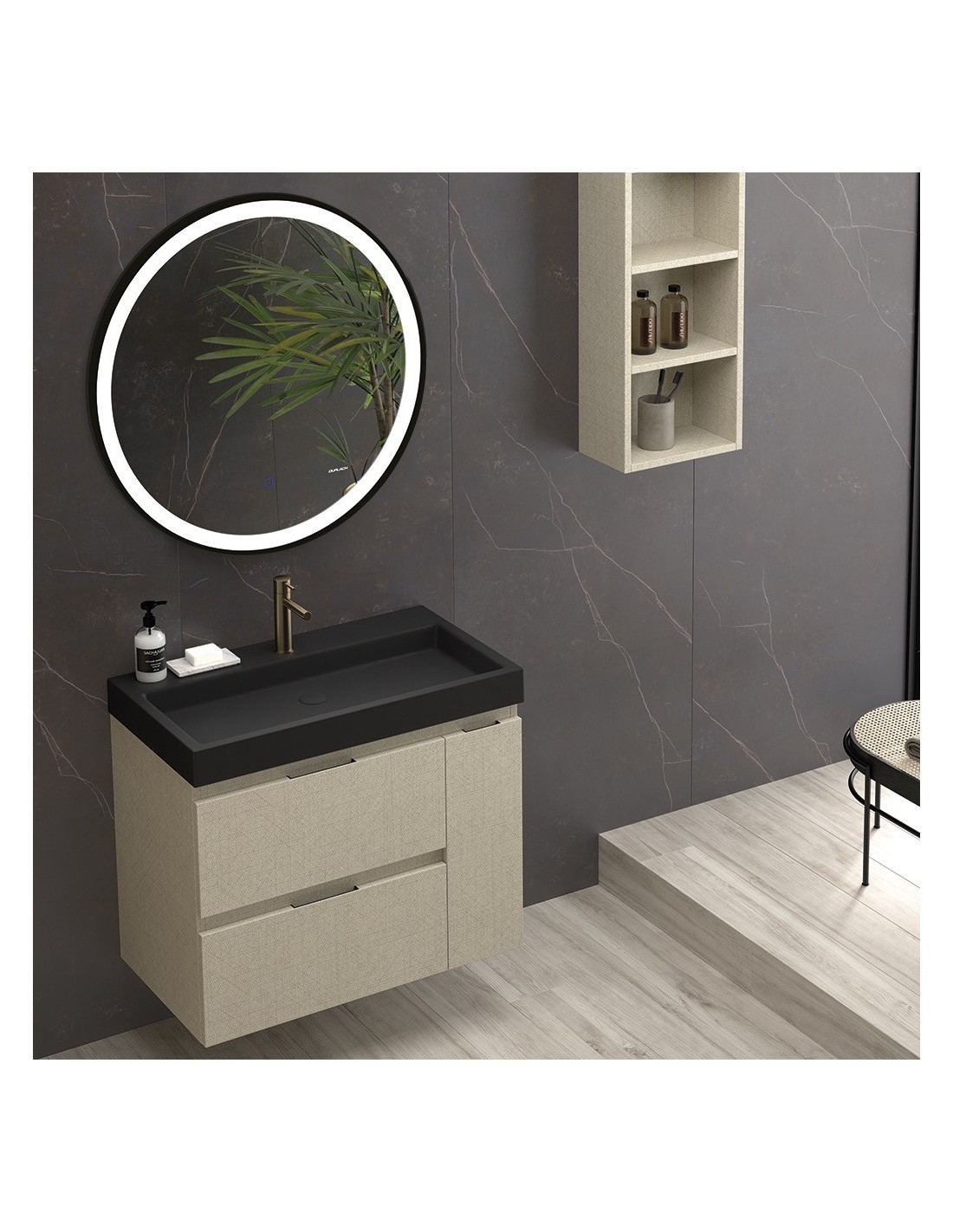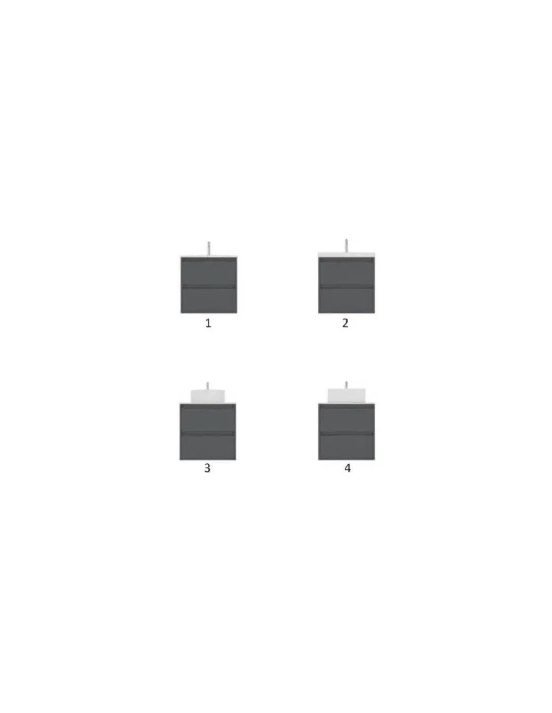 - La largeur du meuble, le type de lavabo et le plan de travail doivent être sélectionnés (voir options).