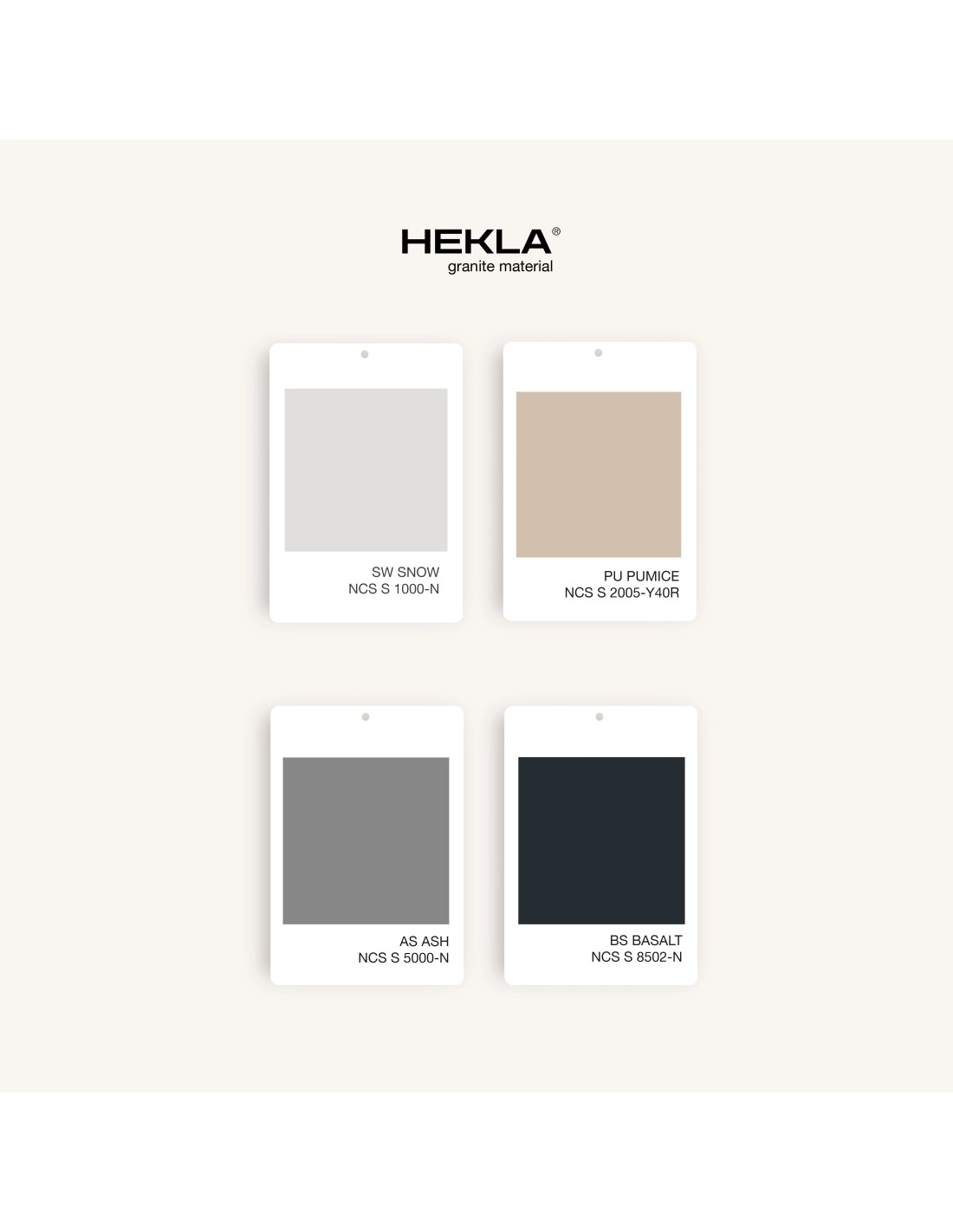 - Le matériau de fabrication Hekla a une finition mate avec une texture granuleuse et non lisse.