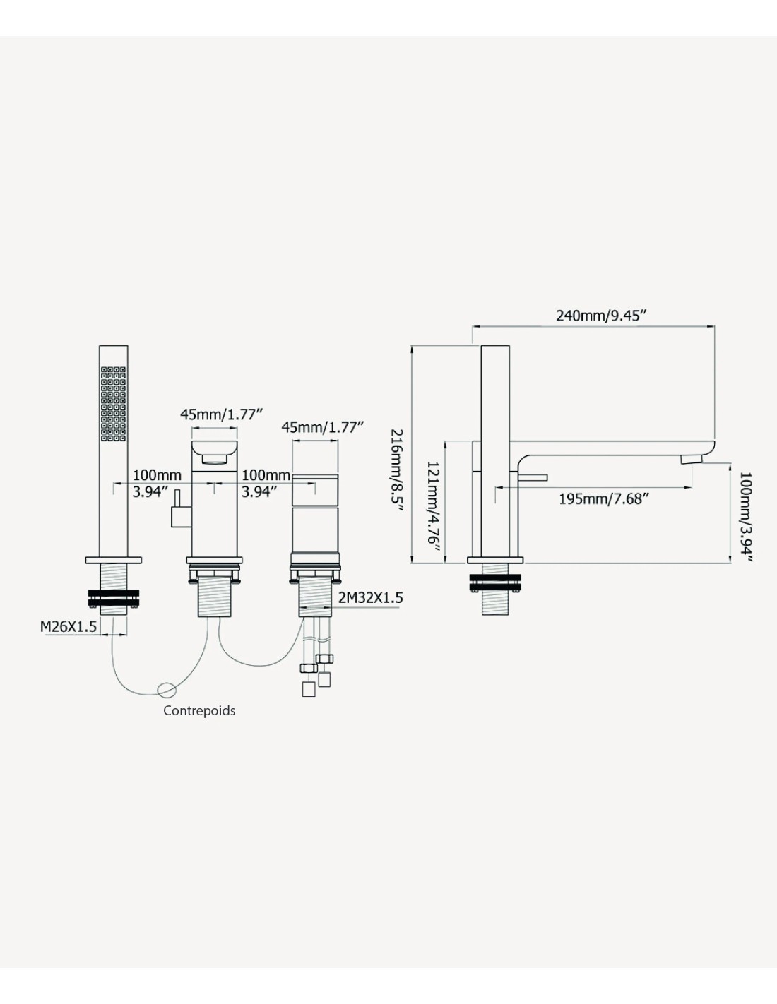• Ensemble avec robinet mitigeur de rebord pour baignoire avec connexion 3/8".
