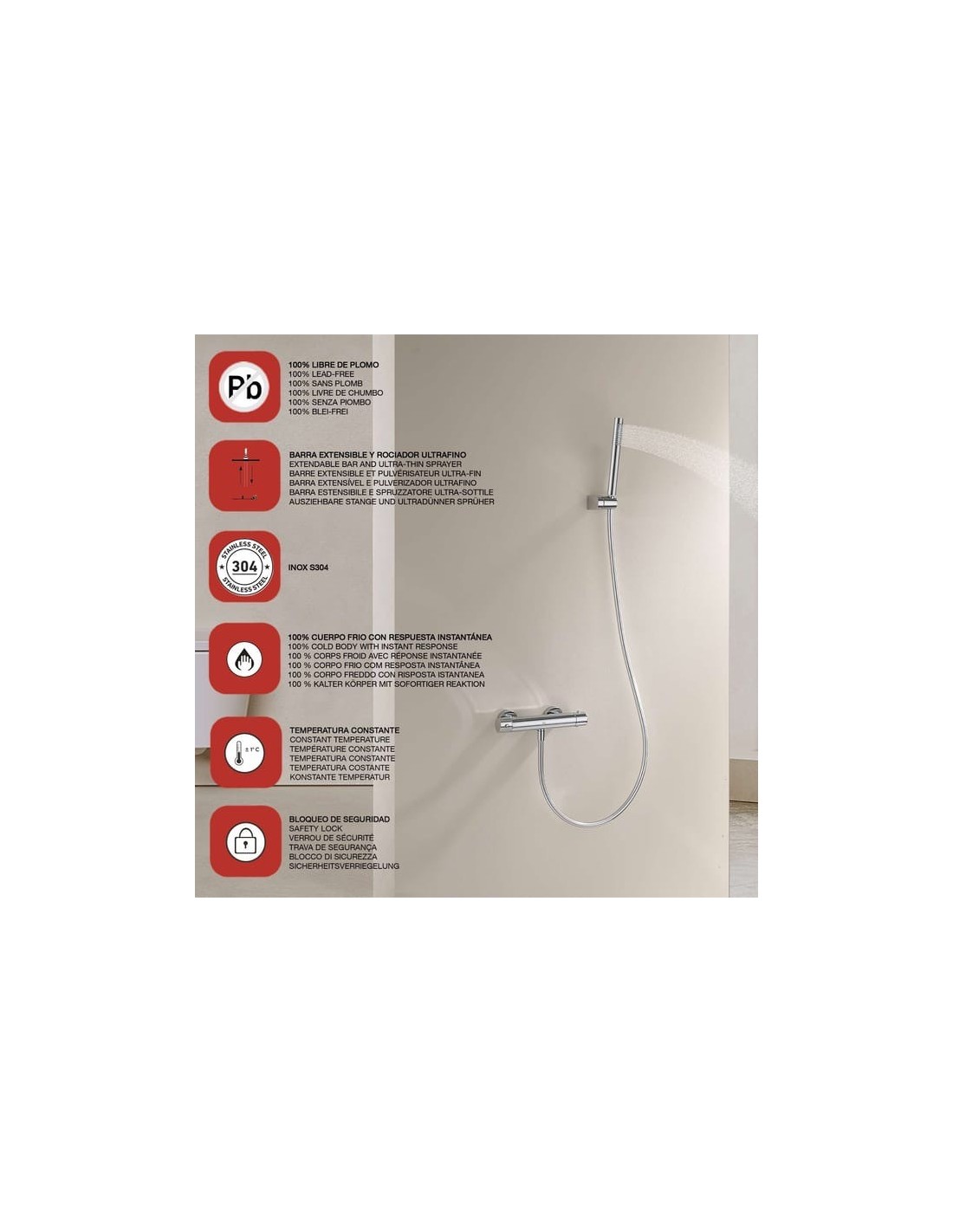 Sanitshop propose ce produit se trouve dans la catégorie Robinets de douche (robinetterie pour douche): avec kit de douche, en laiton, d'1 voie, thermostatique, de style moderne, de couleur chromée, à ne pas encastrer.
