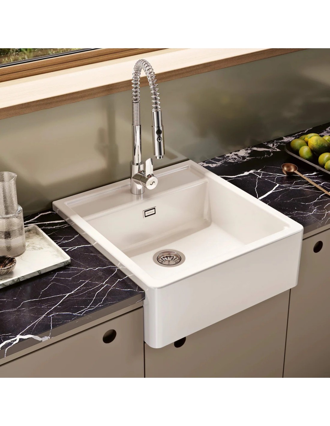 Sanitshop propose ce produit ce qui produit appartient à la catégorie Éviers de cuisine: en céramique, de 595*630 centimètre de long, de couleur blanche, à 1 bac (cuve, vasque), de style rustique, de forme rectangulaire.