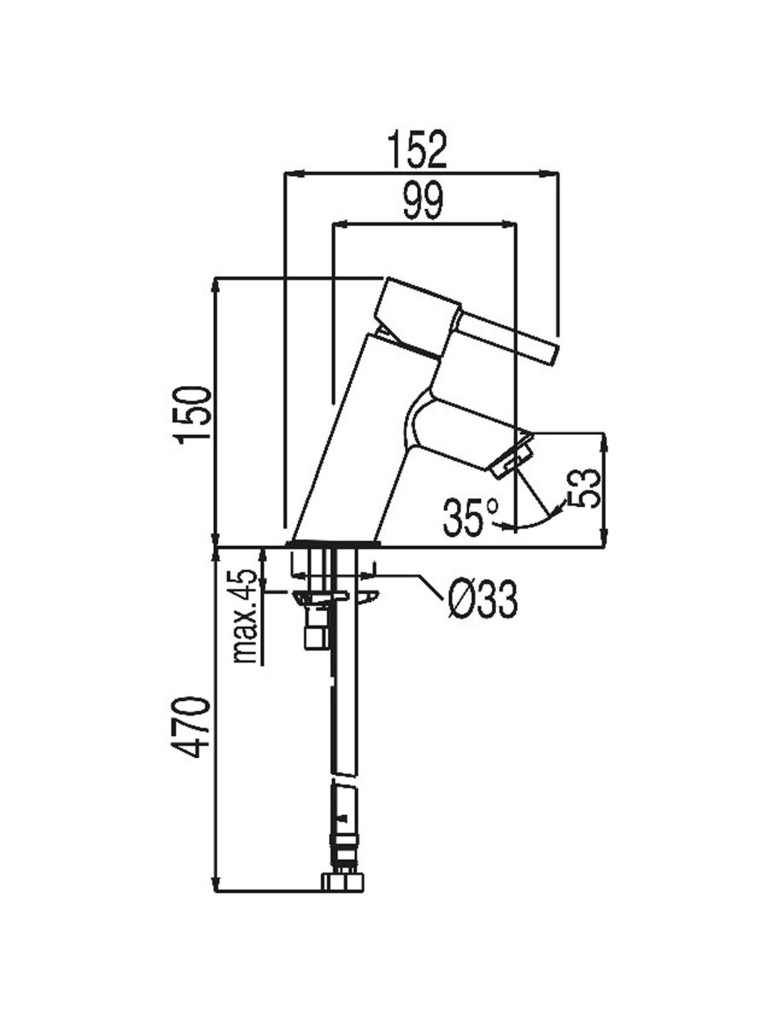 Sanitshop propose ce mitigeur lavabo incliné doté d'une poignée pour réguler la température et le débit d'eau.