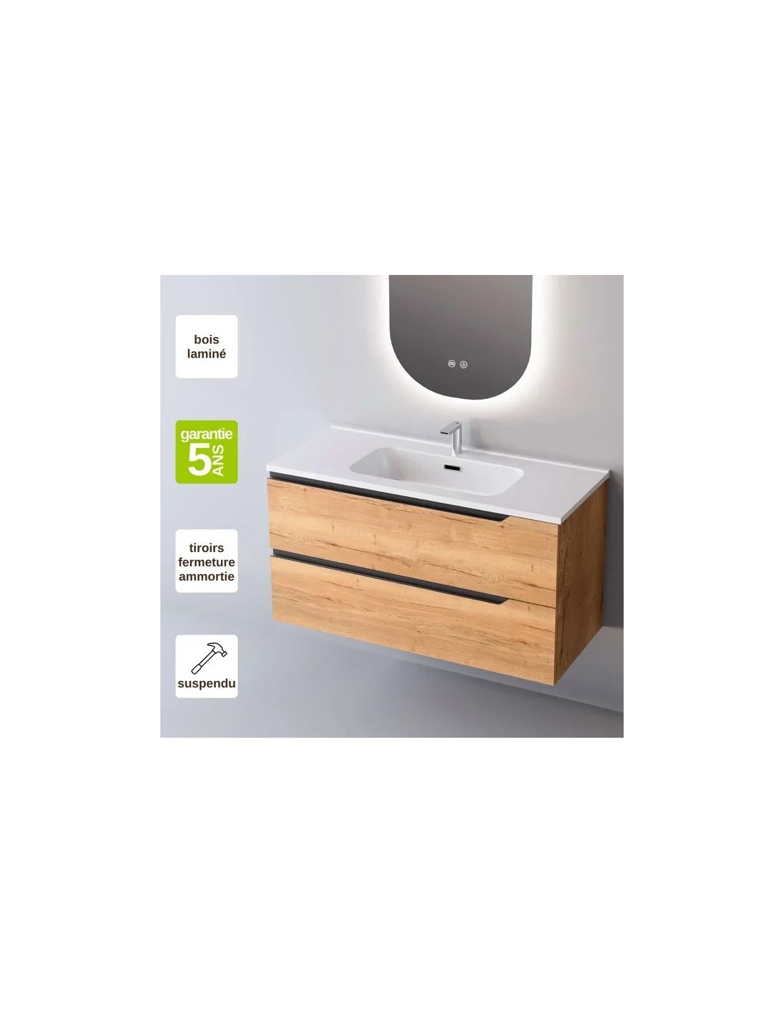 MEUBLE VASQUE SUSPENDU 2 TIROIRS EN BOIS LAMINE "COLLECTION DUO NOFER"