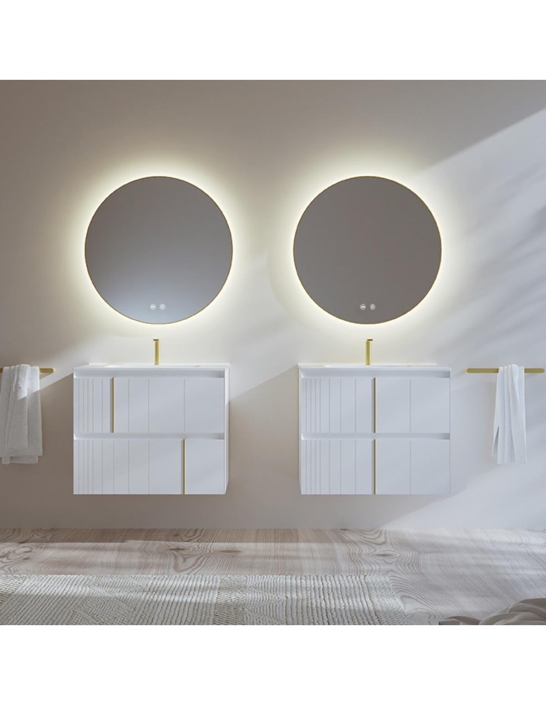 Vous pouvez aussi sélectionner le type de miroir souhaité (facultatif). Ils existent deux modèles de miroirs éclairés avec lumière technologie LED et ils sont aussi antibuée. Ces miroirs sont disponibles sous des formes ronde et rectangulaire. L'autre modèle de miroir disponible est un miroir STANDARD sans lumière et sans technologie antibuée. Les miroirs STANDARD sont toujours rectangulaires.