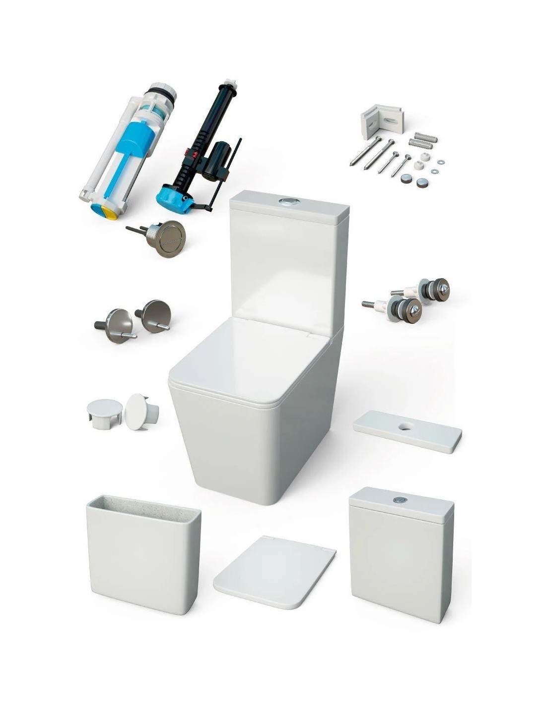 - Réservoir avec couvercle et mécanisme de double chasse 4,5/3 litres. Alimentation inférieure.