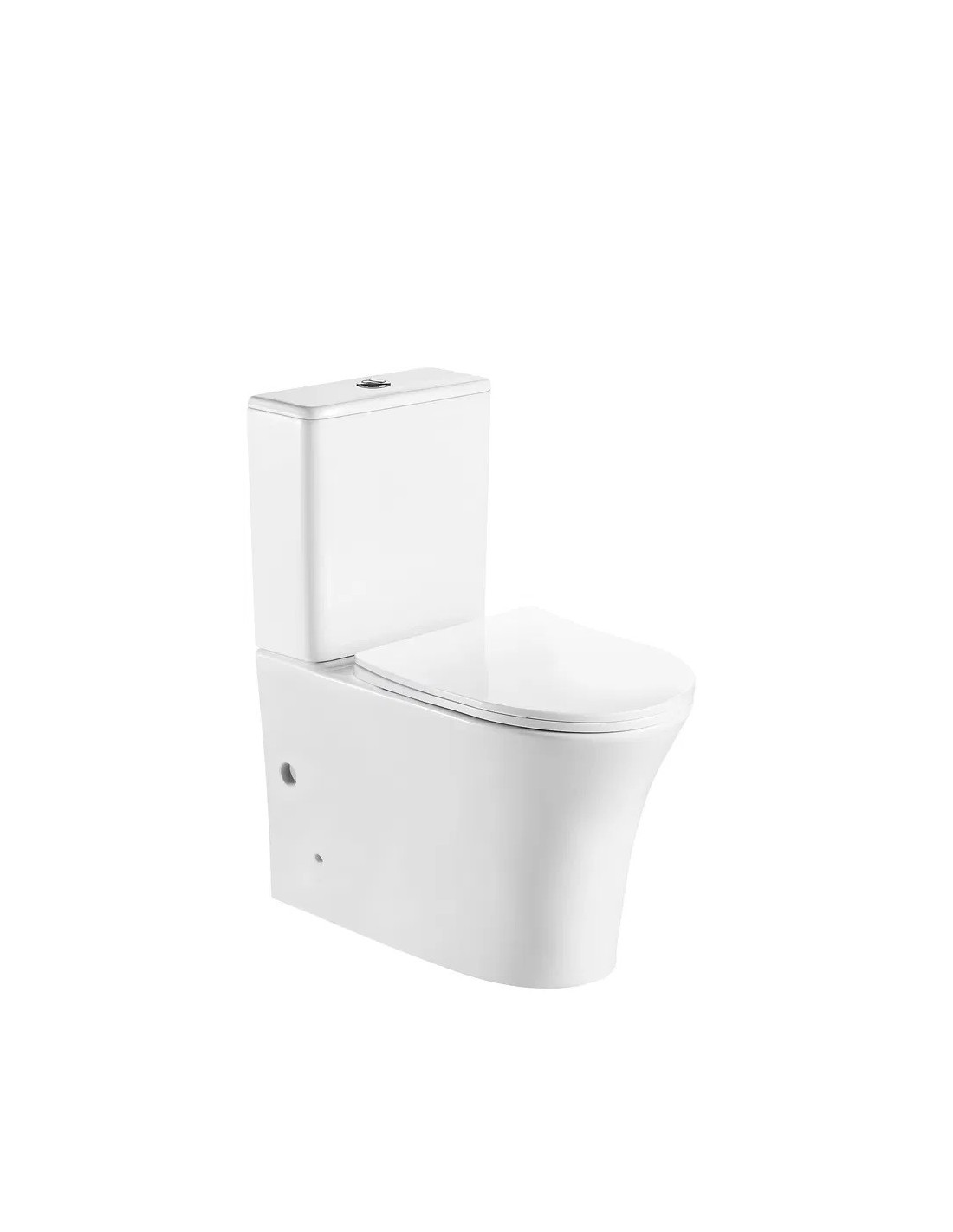 Sanitshop propose ce produit qui appartient à   la catégorie Toilettes (WC, water, cuvettes): à poser (au sol), de sortie verticale (évacuation au sol), de sortie horizontale (évacuation au mur), de sortie double (évacuation au mur ou au sol), avec abattant frein de chute (fermeture en douceur), de réservoir bas (standard), d'alimentation inférieure, en porcelaine (céramique, faïence), de style moderne, de couleur blanche, compacts (collés au mur), avec technologie rimless (auto-nettoyage).