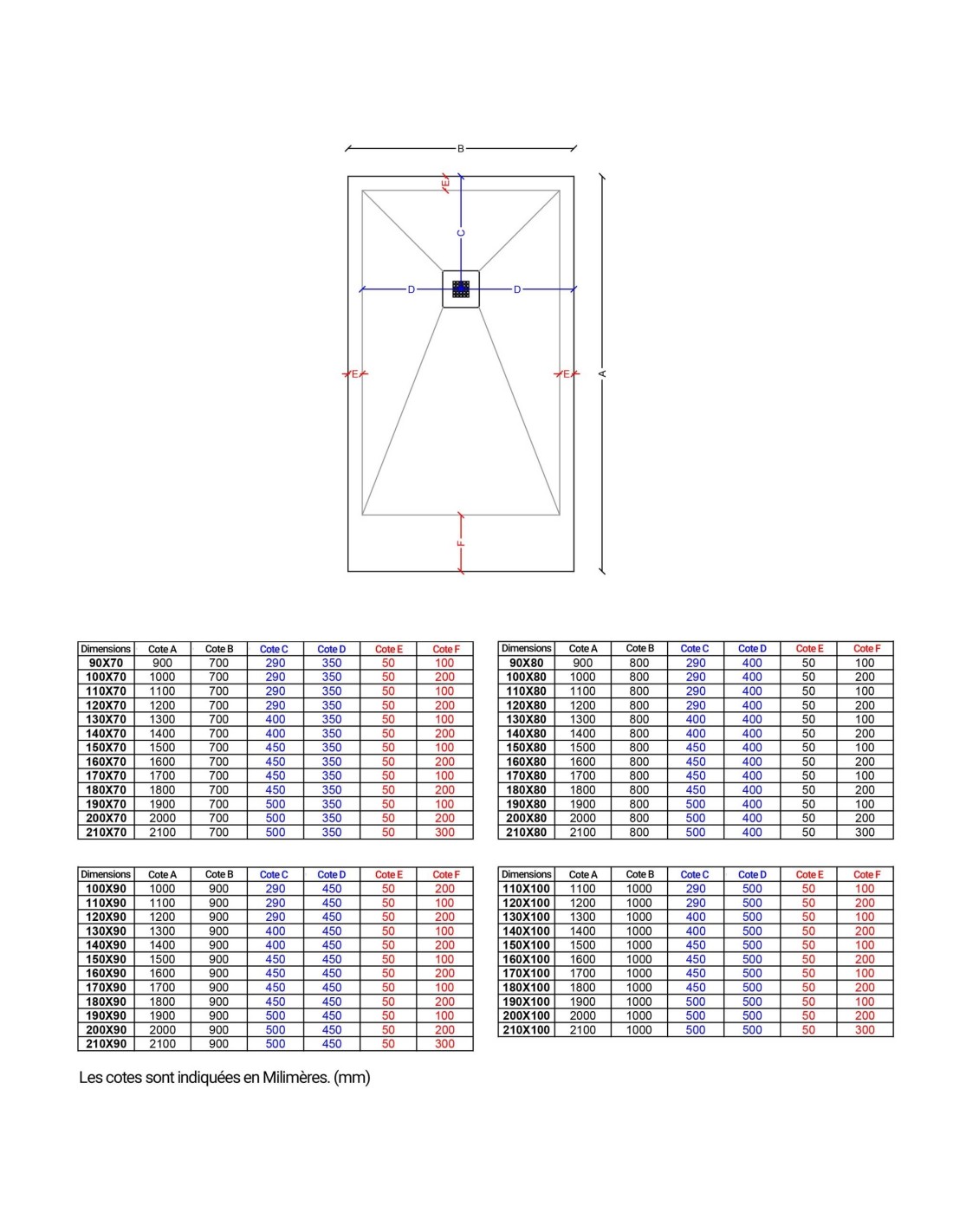 - Receveur de douche rectangulaire.