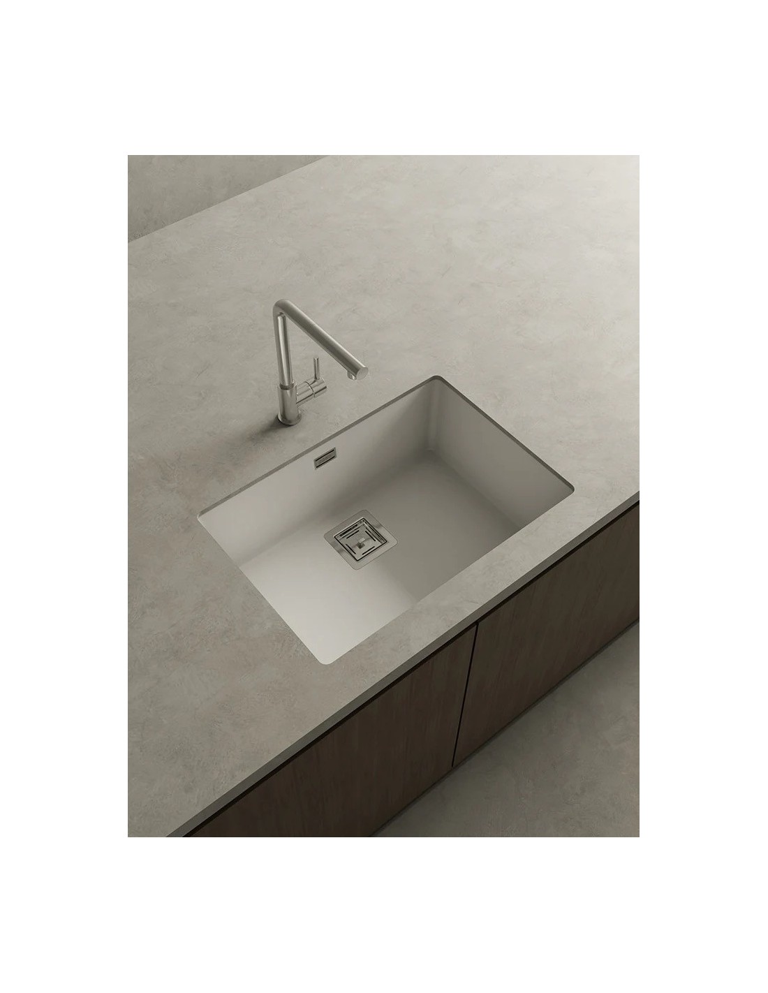 Sanitshop propose ce  produit qui  se trouve dans la catégorie Éviers de cuisine: en granit, sans trou de robinetterie, encastrés sur le plan, encastrés sous le plan, de 54  (centimètres) de long, en couleurs, à 1 bac (cuve, vasque), de style moderne, de forme carrée.