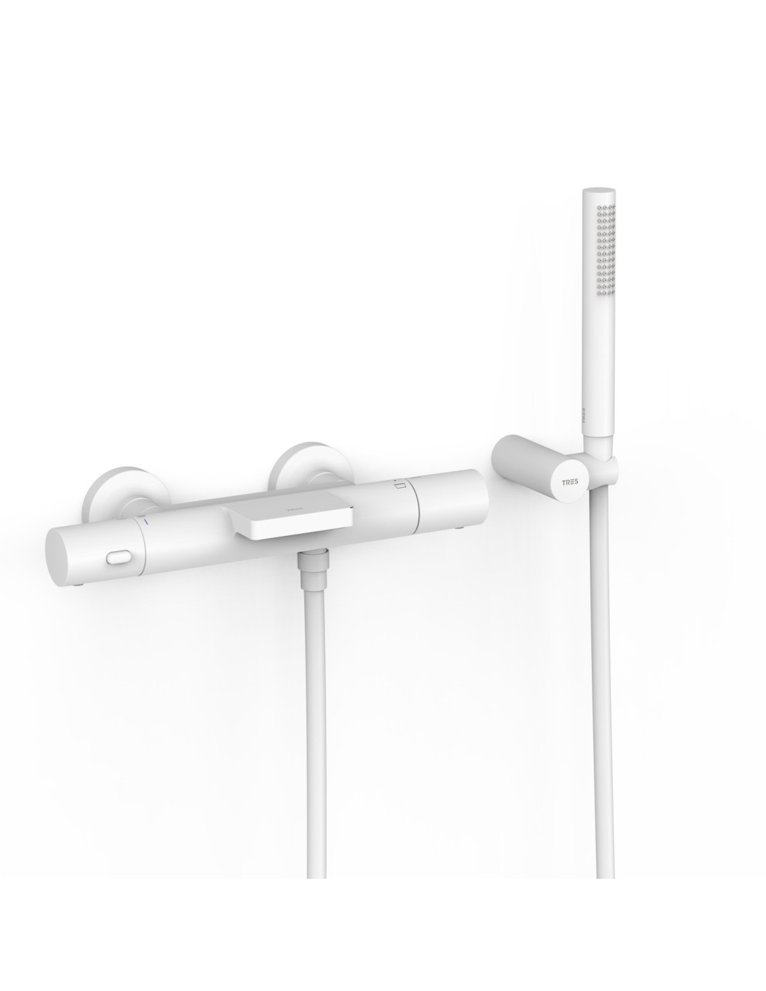 • Robinet de douche mural avec douchette à main de la gamme Over Wall de la marque Tres.
