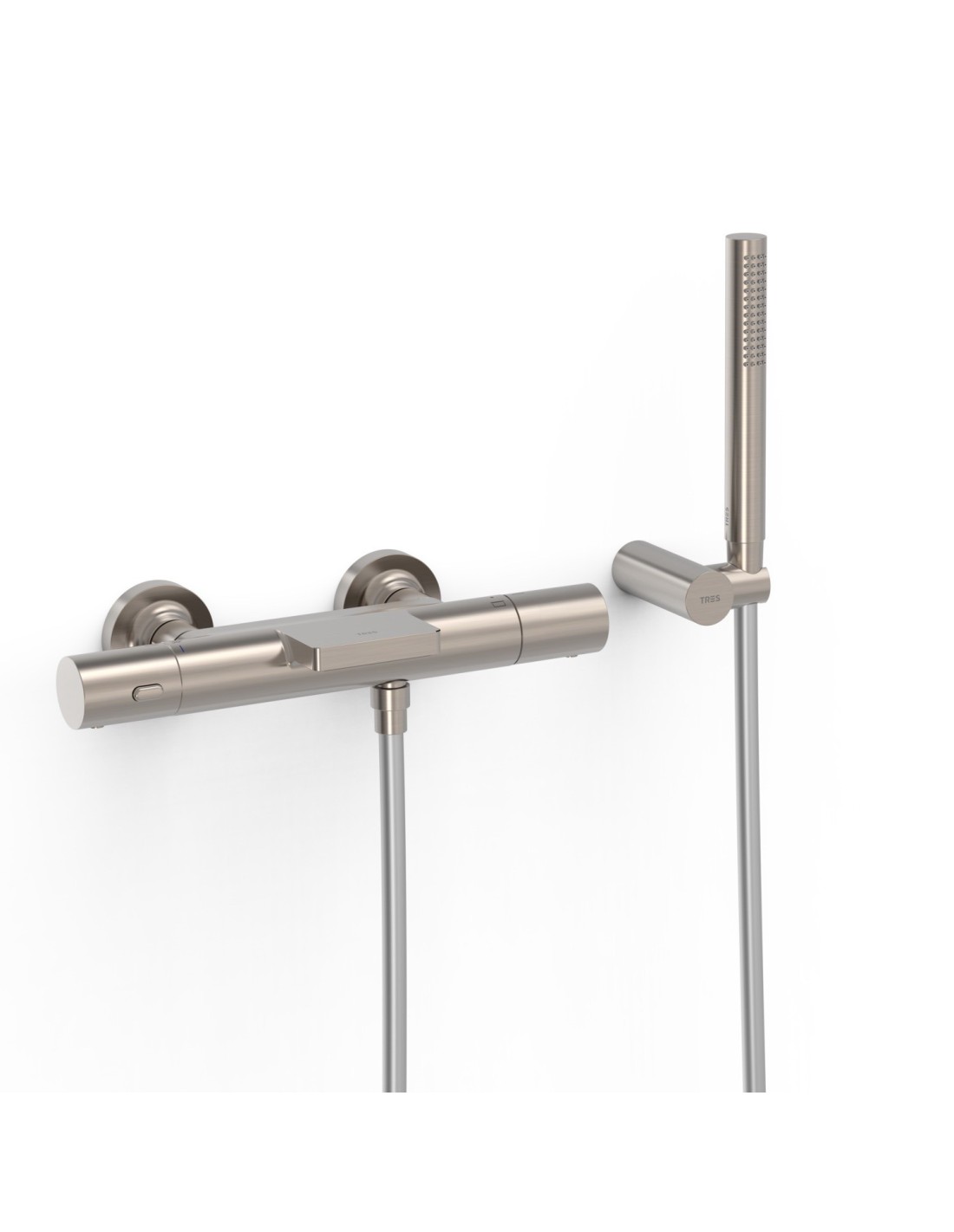 • Robinet de douche mural avec douchette à main de la gamme Over Wall de la marque Tres.