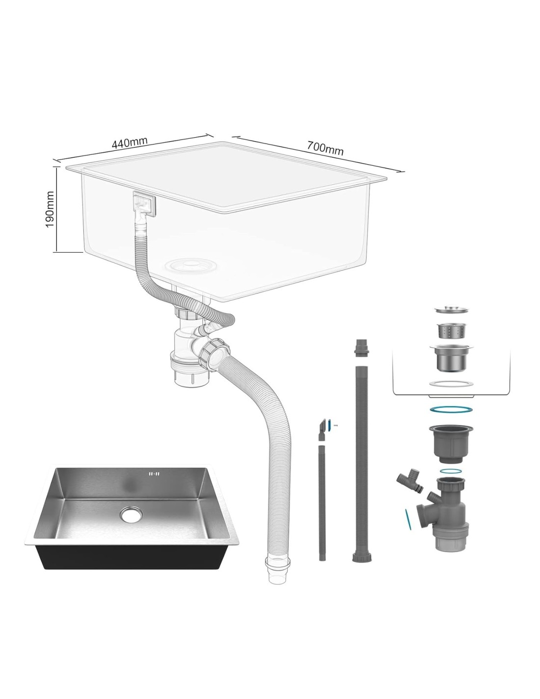 Sanitshop propose ce produit qui appartient à la catégorie Éviers de cuisine: en acier inoxydable, encastrés, encastrés sur le plan, de 70 *44 cm (centimètres) de long, de couleur chromée, à 1 bac (cuve, vasque), de style moderne, de forme rectangulaire.