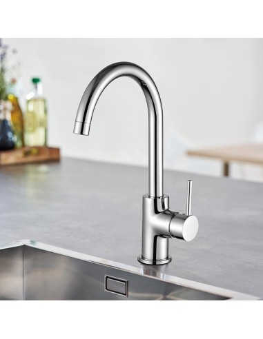 Ce produit appartient à la catégorie Robinetterie de cuisine (robinets pour éviers), de rebord, à bec haut , mitigeur (monobloc), en laiton, de style col de cygne