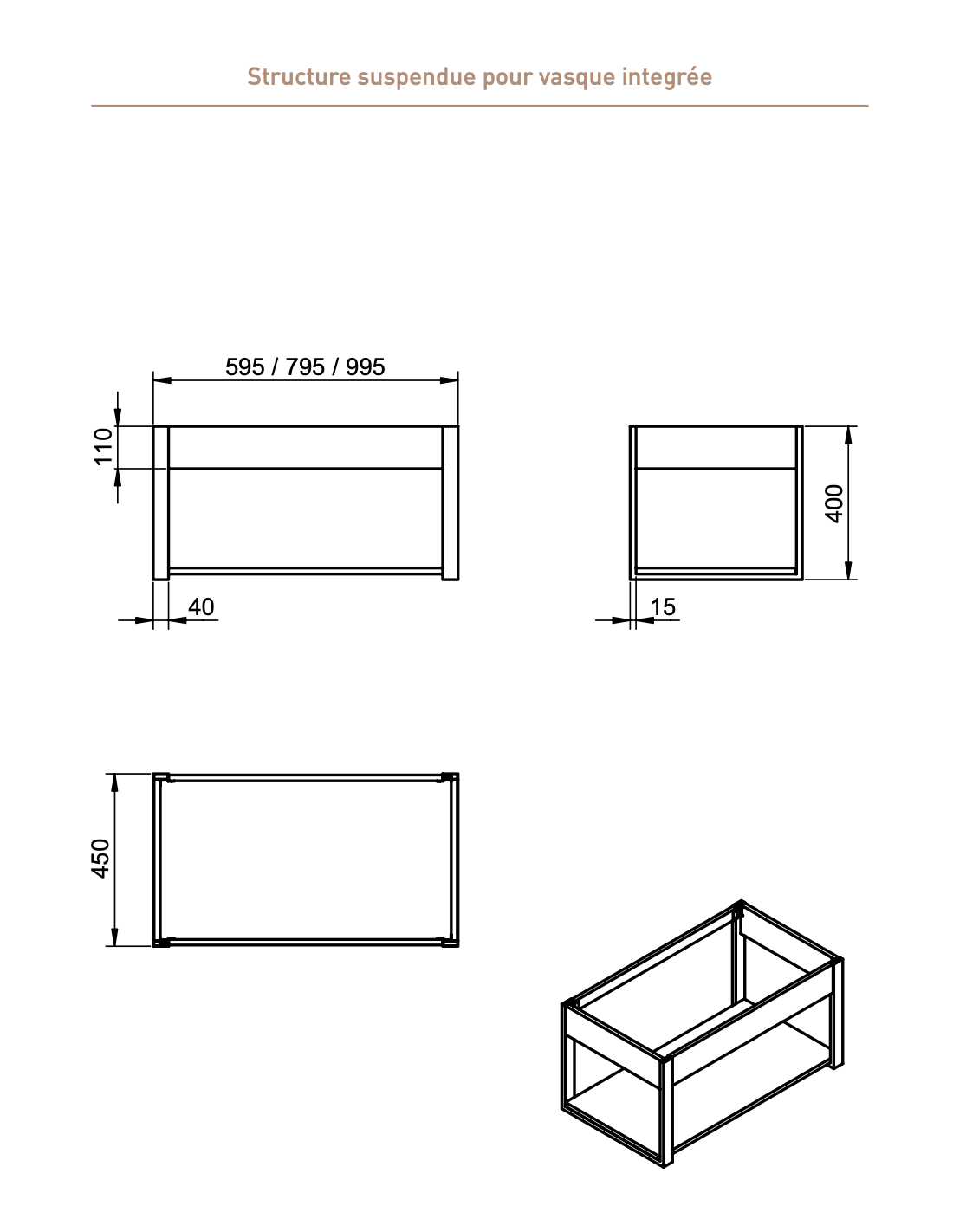 Suspendu/intégrée : le meuble est suspendu et la vasque est intégrée