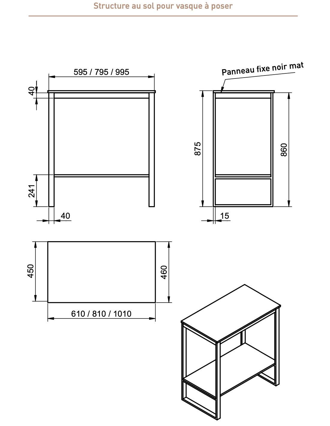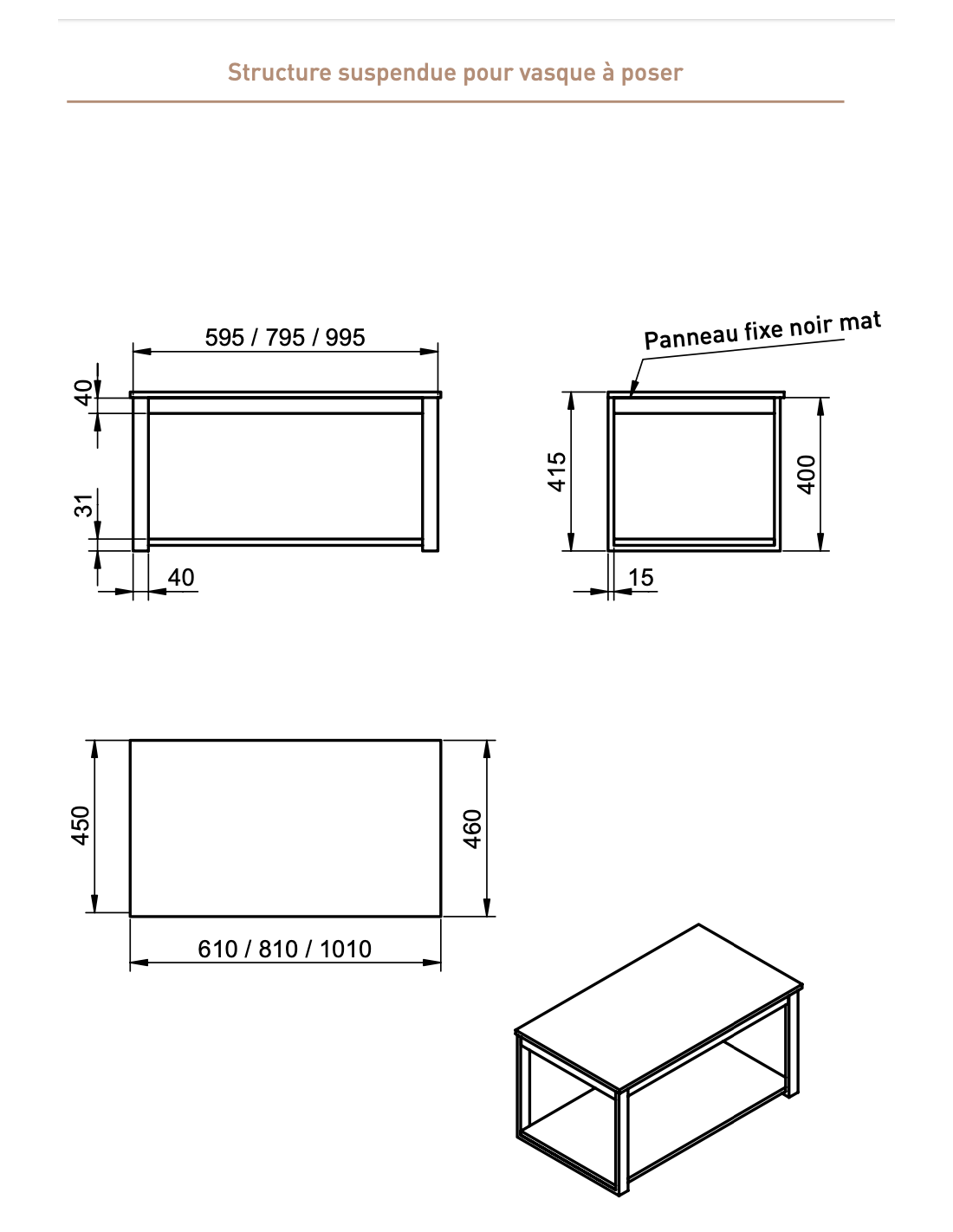 Suspendu/à poser : le meuble est suspendu et la vasque est à poser