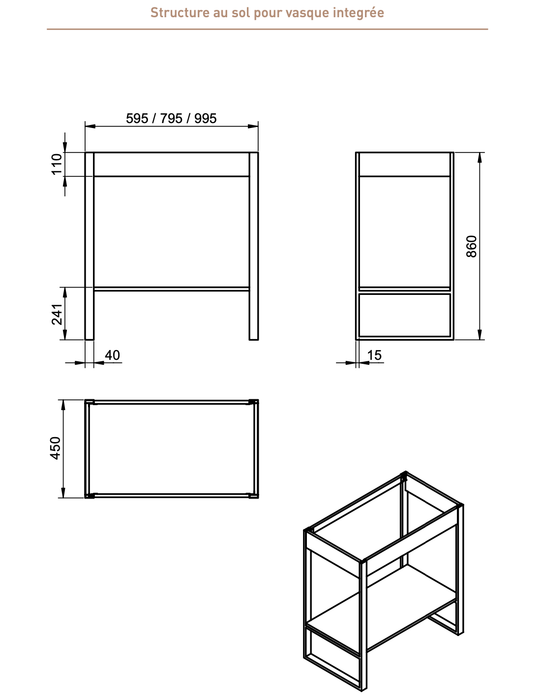 Sol/intégrée : le meuble avec pied et la vasque est intégrée