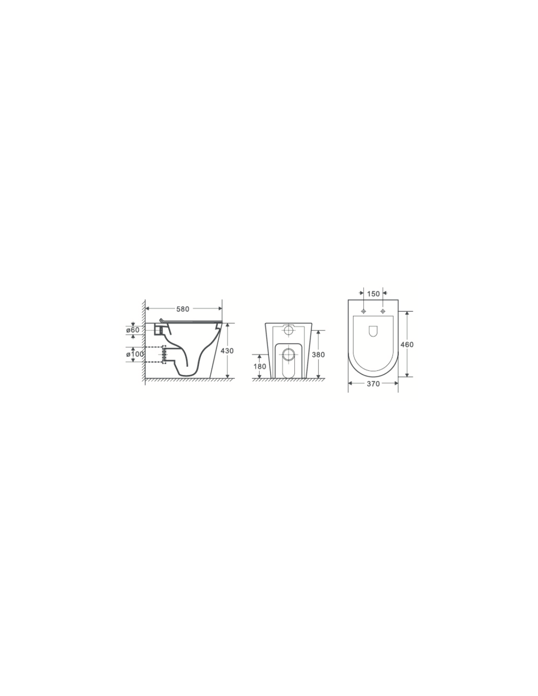WC à accostage mural sans bride de rinçage
