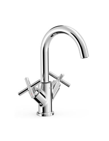 • Robinet mélangeur manuel pour vasque avec poignées en croix.