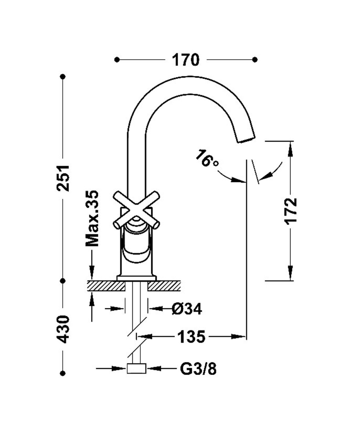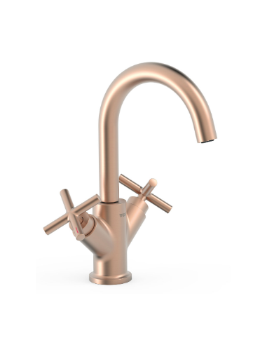• Robinet mélangeur manuel pour vasque avec poignées en croix.