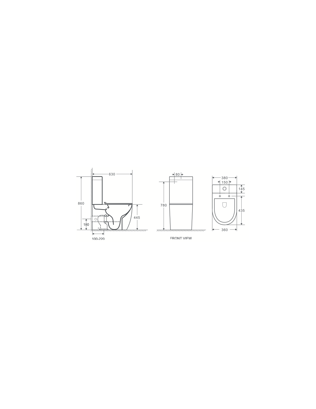 Toilette sans bride de rinçage 2 pièces Dimensions : 630x360x860 mm