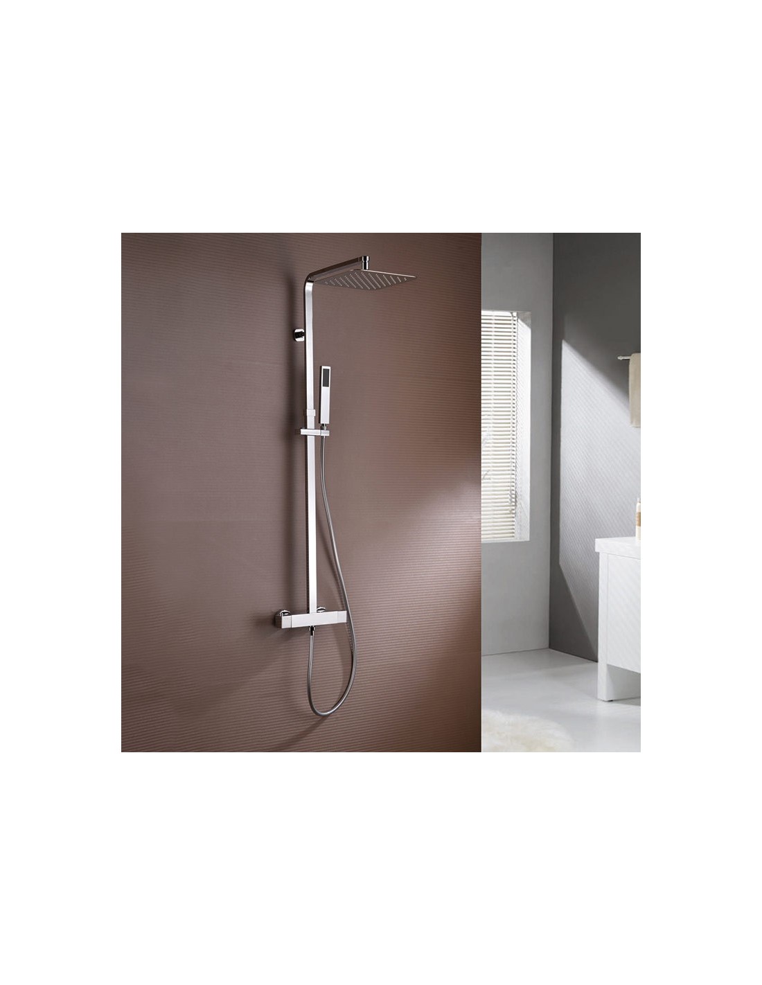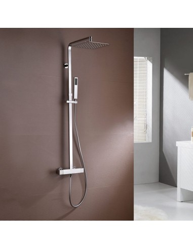 Sanitshop propose ce produit qui appartient à la catégorie colonne s de douche (colonnes de douche avec hydromassage ):de douche uniquement ,de couleur chrome ,télescopiques (avec hauteur réglable) en laiton,thermosttaiques , avec pommeau haute supérieure carré ,de style moderne