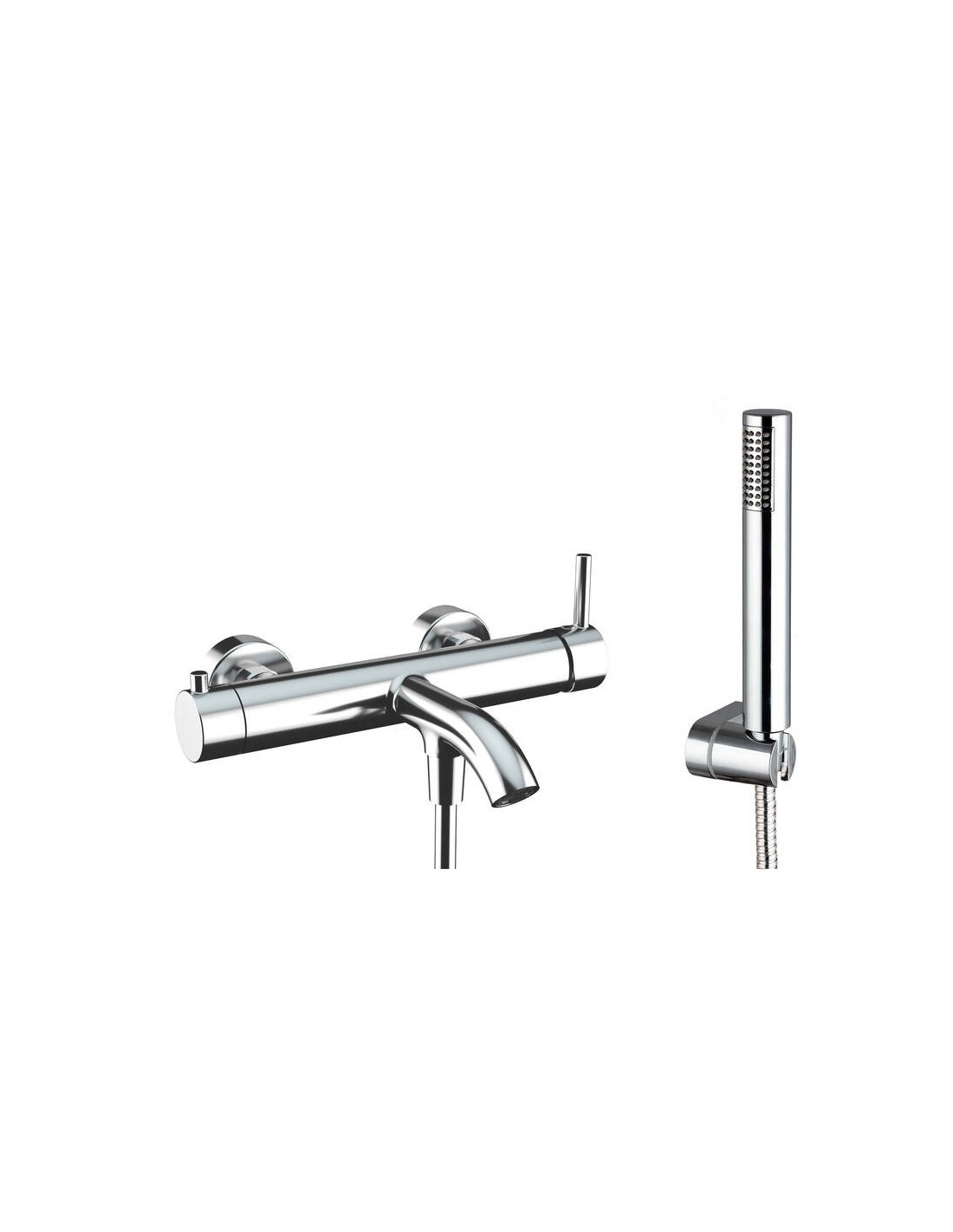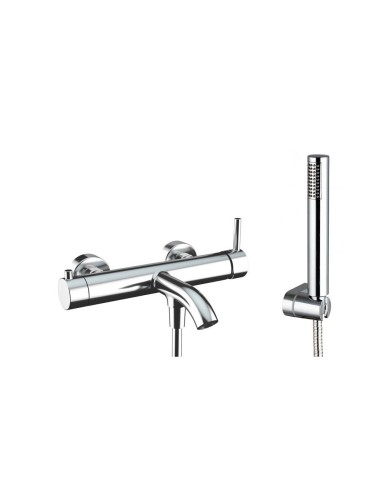 Sanitshop Ce produit qui appartient à la catégorie Robinet bain -douche (robinetterie pour la salle de bains, robinets pour bain ou baignoire-douche ): de rebord, avec bec bas , avec bec long , en laiton, une poignée, de style moderne, de couleur chromée, de corps rond.