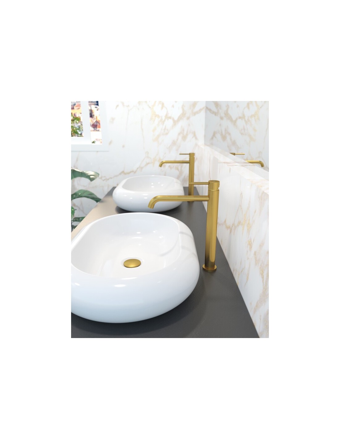 MITIGEUR MONOCOMMANDE A BEC HAUT EN LAITON FINITION PVD "COLLECTION SIRIO GME"
